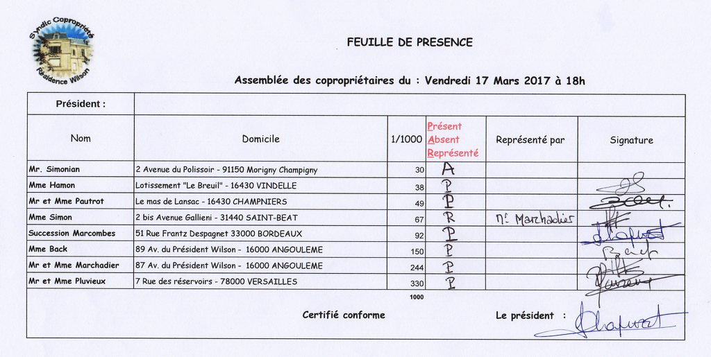 Feuilles de présence