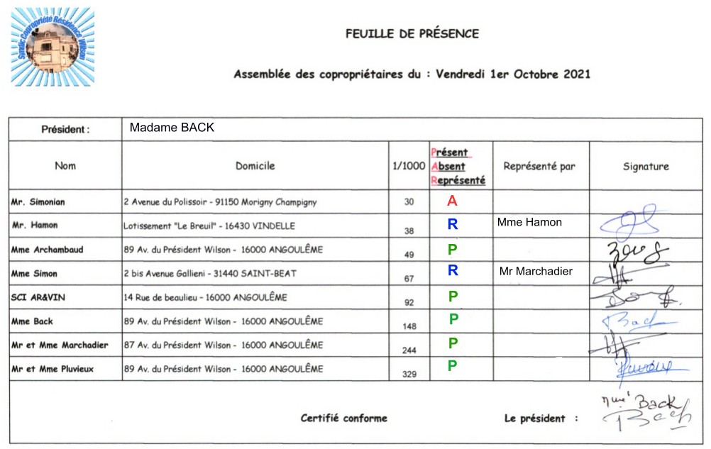 Feuilles de présence
